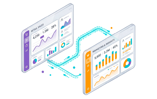 Integra la información de ventas e inventarios con tus plataformas de BI internas.